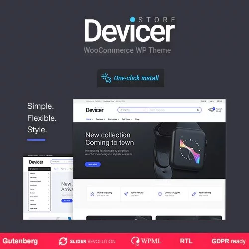 Devicer store theme is an all-in-one solution for a digital online store or electronics marketplace. A fully integrated and stylish Woocommerce store section with useful plugins allows you to create a really powerful electronics, mobile and digital products store.