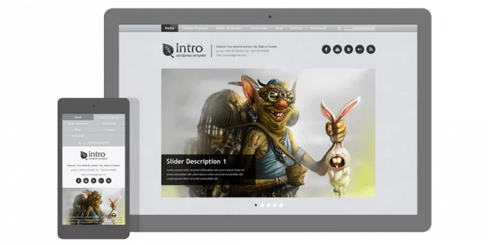 Intro is a fully featured responsive WordPress theme. The theme can be used for any personal or business website. Precise and easy to use admin panel allows you to make many customizations without knowing HTML or CSS. Colors, images, fonts, widgets, sliders, portfolios, galleries. Everything can be customized and configured through the administration panel.